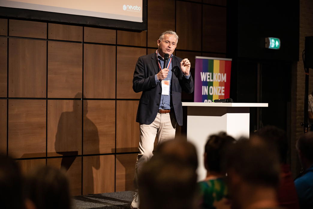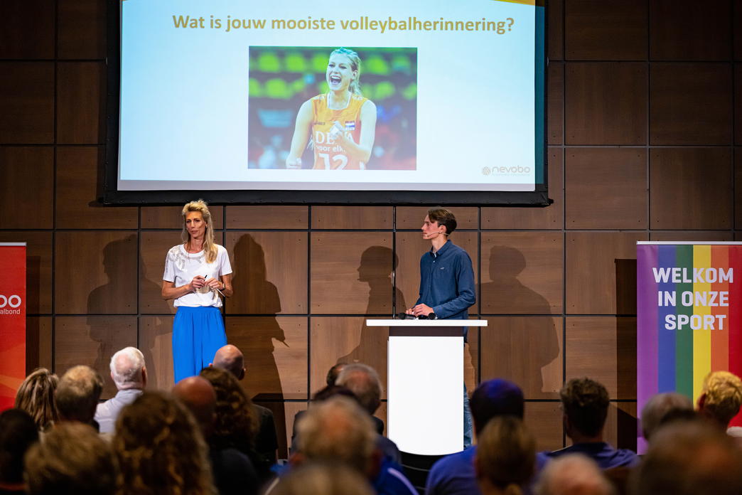 Tijdens de tweede plenaire sessie nodigden Manon en Sep de deelnemers uit om hun ervaringen en opgedane inzichten van de dag te delen. Eén van de deelnemers deelde geraakt te zijn door de theatervoorstelling Onze club is van iedereen: “Ze beelden de dingen die onbesproken blijven uit, waardoor het juist bespreekbaar wordt.” Een andere deelnemer liet weten aan het denken te zijn gezet over hoe hij de jeugd meer kan betrekken bij de vereniging, niet alleen bij het volleyballen.