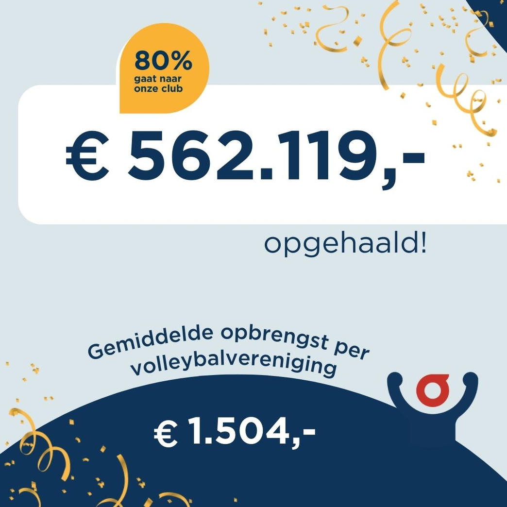 Gemiddeld haalden volleybalverenigingen een bedrag van 1.504 euro op. Netten, een toernooi organiseren, een volleybalkamp en vele andere mooie spaardoelen. Dat zijn de behaalde doelen van de 299 volleybalverenigingen die meededen met de Grote Clubactie in 2024. Samen haalden ze 562.119 euro op voor hun spaardoelen.