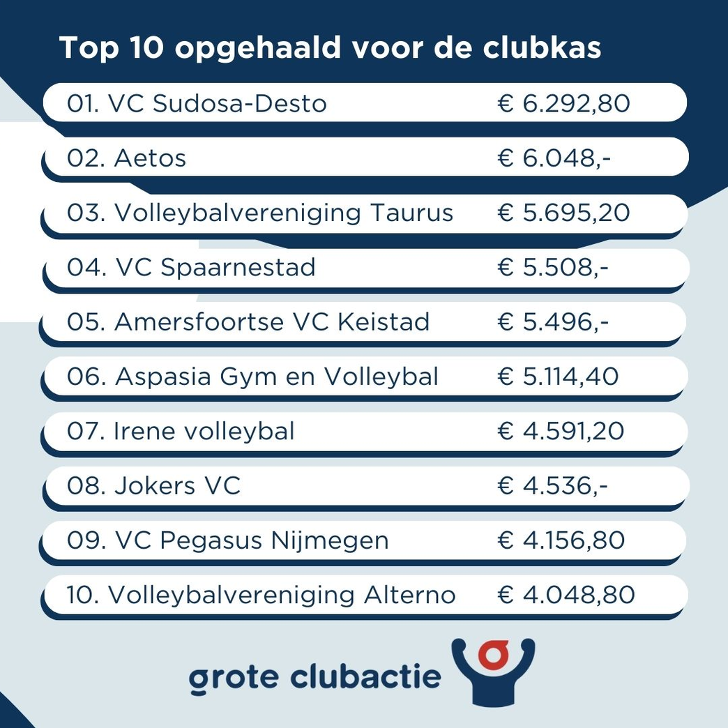 Volleybalverenigingen succesvol met de Grote Clubactie